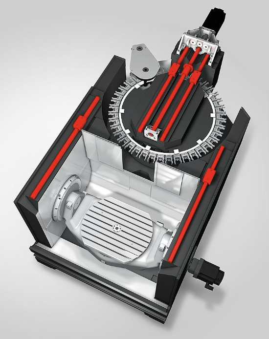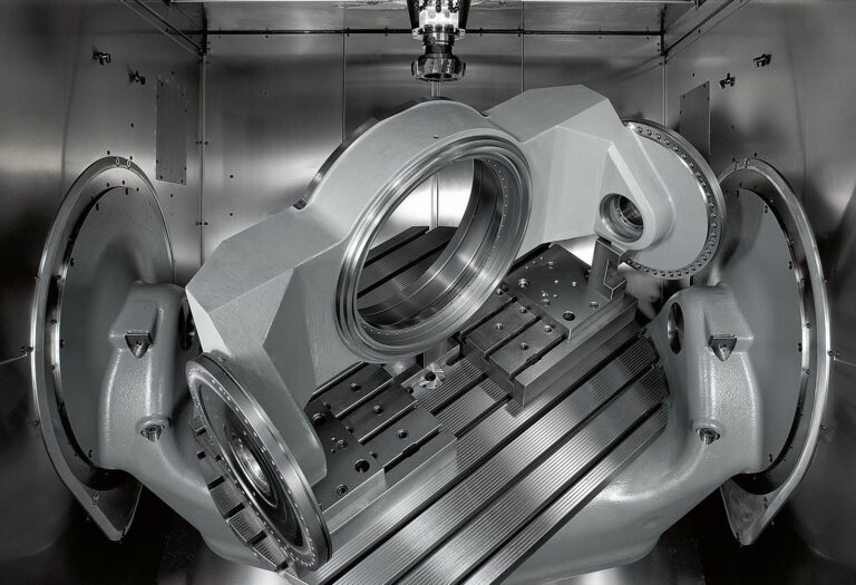 The Advantage: Trunnion systems (featured in Hermle and YCM NFX series) offer immense rigidity. Because the table tilts and rotates, you get incredible access to five sides of a part with high positional accuracy. This is the “workhorse” configuration for medical and small aerospace components.